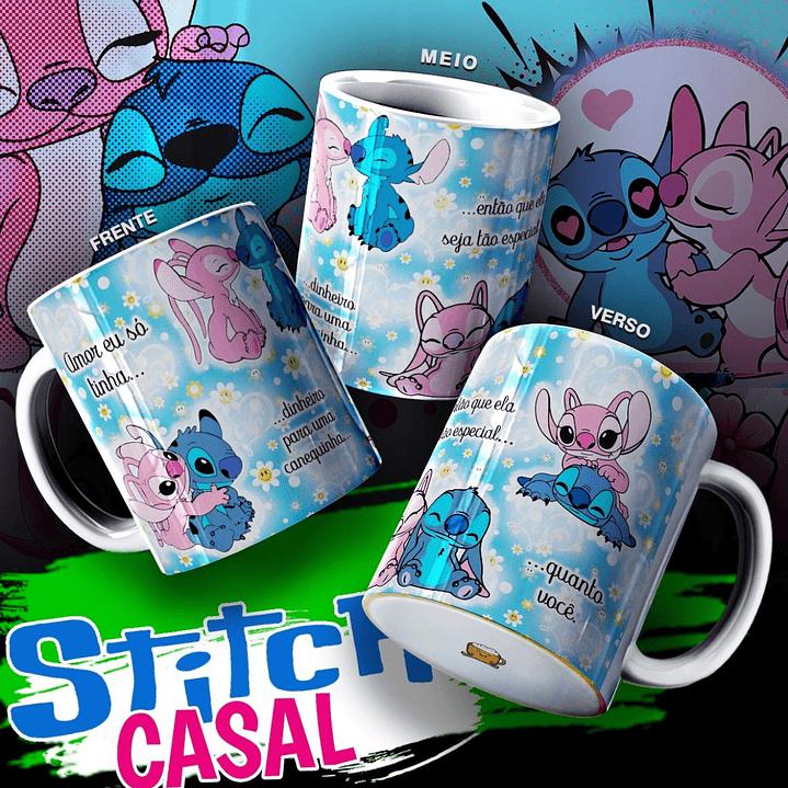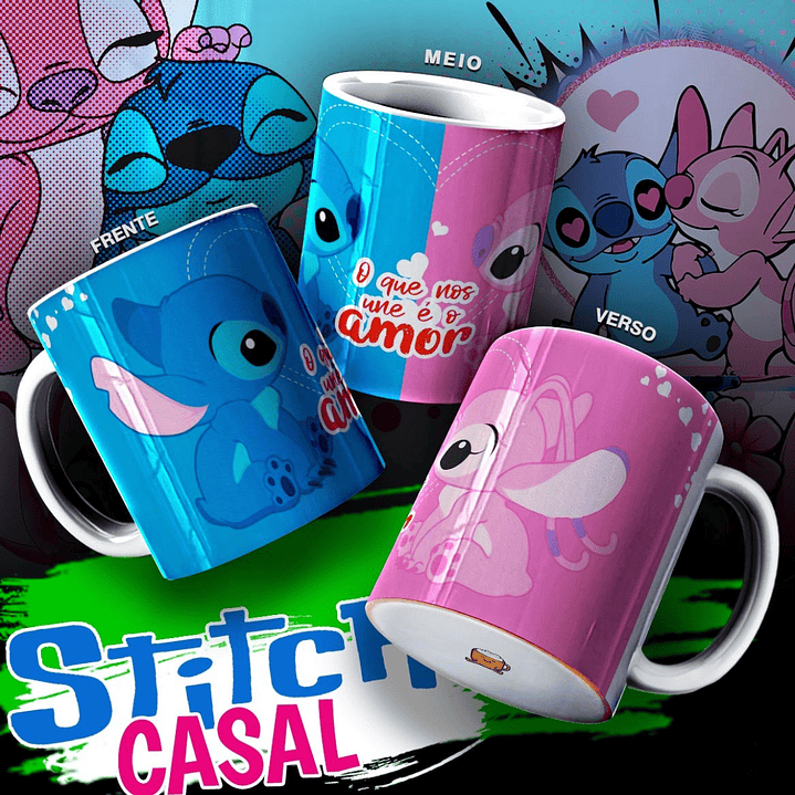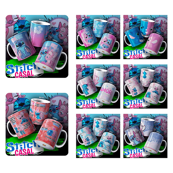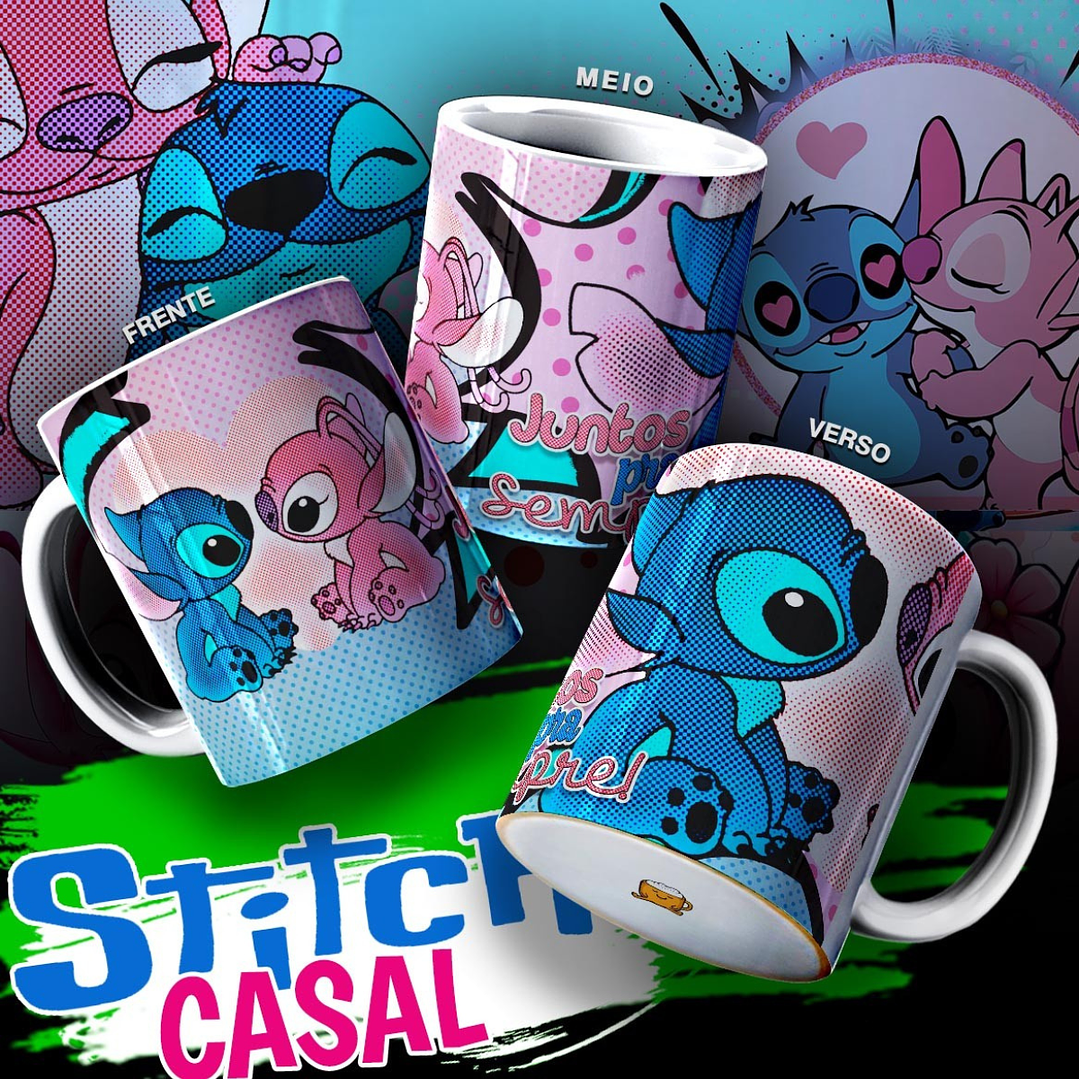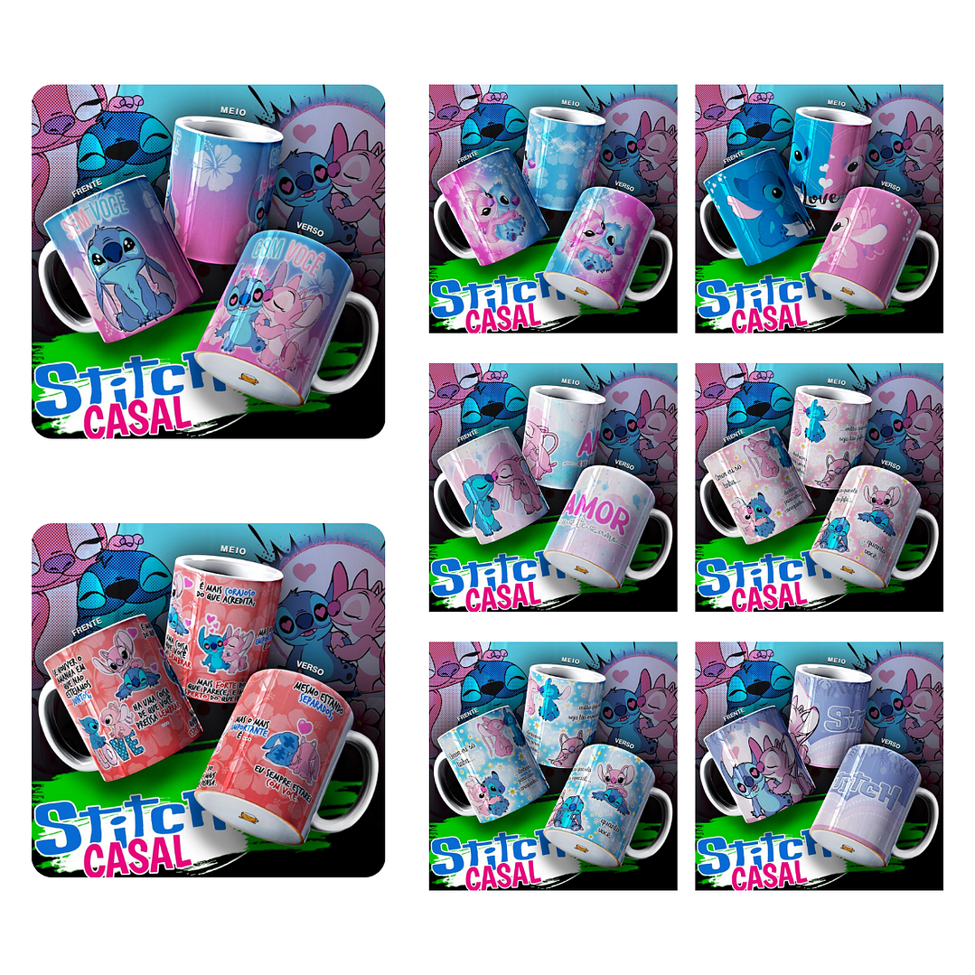 Pack Artes Sublimação Canecas Stitch Masculino e Feminino